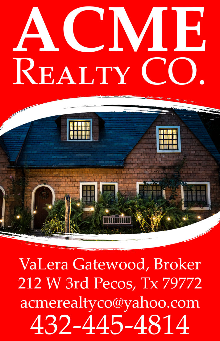 VaLera Gatewood, Broker 212 W 3rd Pecos, Tx 79772 acmerealtyco@yahoo.com 432-445-4814